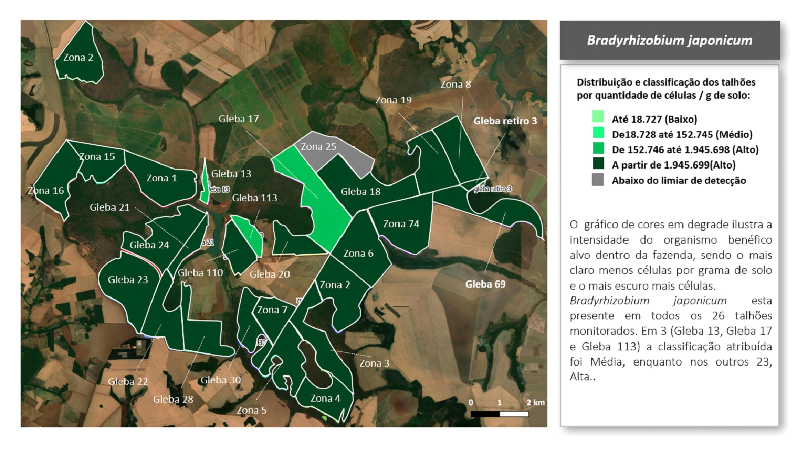 A análise do DOT-Solo gera mapas para aferição da presença dos microrganismos nas lavouras (Crédito: Doroth)