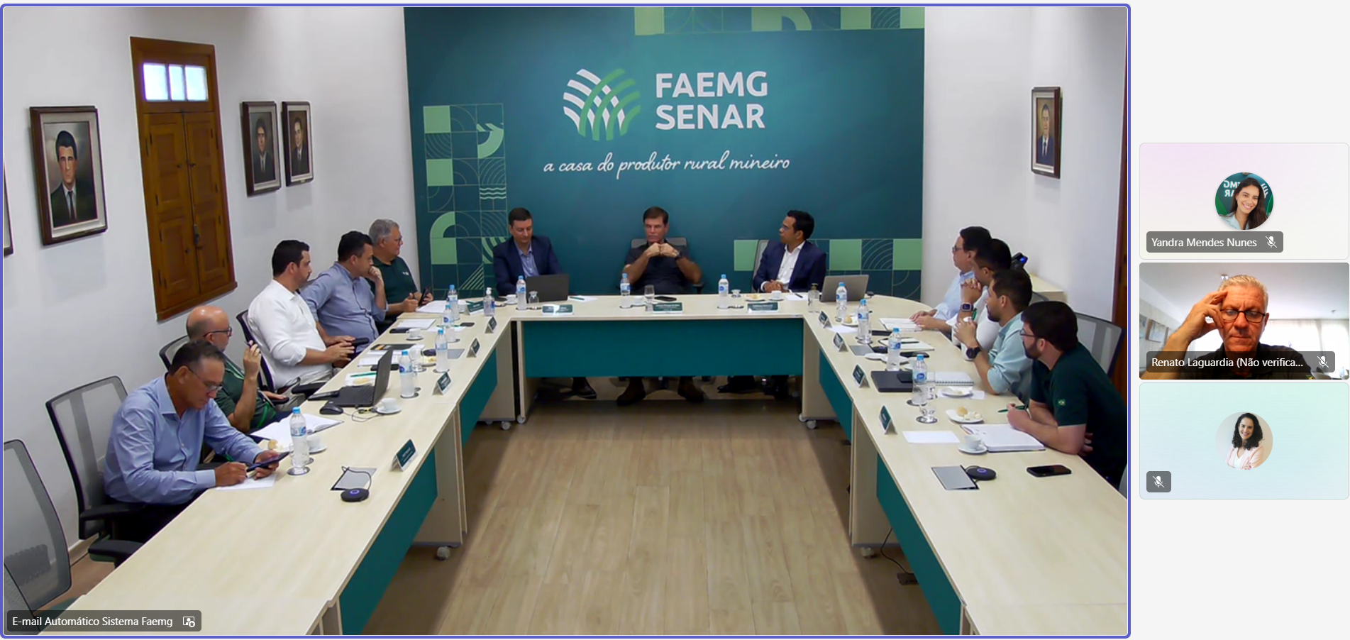 Também participaram da reunião o superintendente do Senar Minas, Celso Furtado Júnior; o superintendente de Finanças, Adriano Cunha; o gerente executivo do Inaes, Bruno Rocha; o gerente da Gerência de Formação Profissional Rural e Promoção Social, Wander Magalhães; o gerente da Gerência de Assistência Técnica e Gerencial, Wender Borges; o gerente de Agronegócios, Rafael Rocha, e o gerente comercial da Agridrones Arthur Costa Gomes Fernandes.