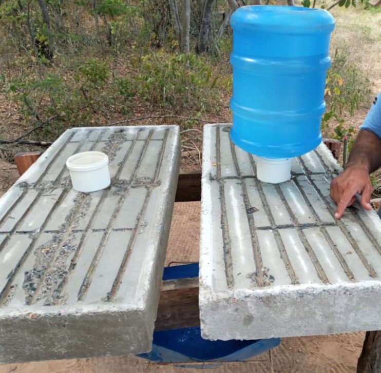 A criatividade chamou a atenção do técnico de campo Franklin Souza, que presta assistência para Kidão e outros 28 apicultores da região por meio do AgroNordeste. Atuando desde março de 2020, o especialista relata que o período de seca é intenso, atingindo temperaturas médias de 38°C e, por isso, é preciso criatividade. “Água é vida. Com essa seca intensa, alguns poços que eles cavam mantêm água por um pequeno período de tempo. Agora, nesta época do ano, você vê tudo seco. Devido a esse cenário, as abelhas têm dificuldade para encontrar água perto dos apiários”.