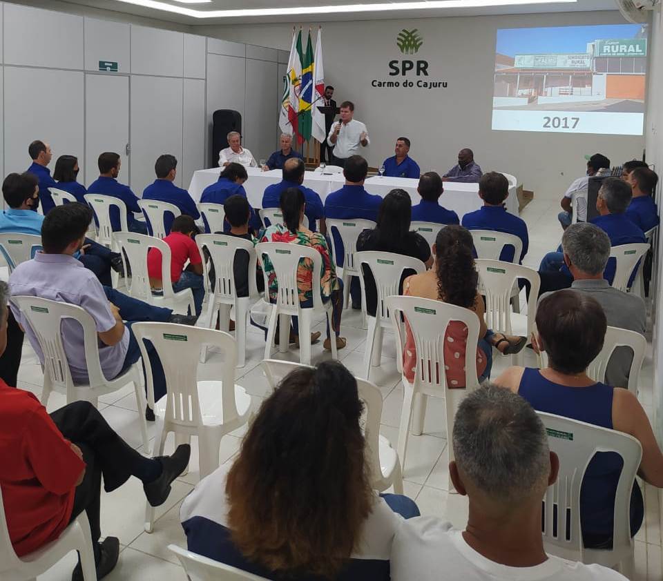 O Sindicato dos Produtores Rurais de Carmo do Cajuru acaba de empossar sua nova diretoria. Em cerimônia realizada em 6 de abril na sede do sindicato, Eustáquio Vilaça, o Taquinho, tomou posse para mais um mandato à frente da entidade. O presidente do Sistema FAEMG, Antônio de Salvo, o vice-presidente de finanças, Renato Laguardia, e o assessor da presidência Antônio Álvares, prestigiaram a solenidade.